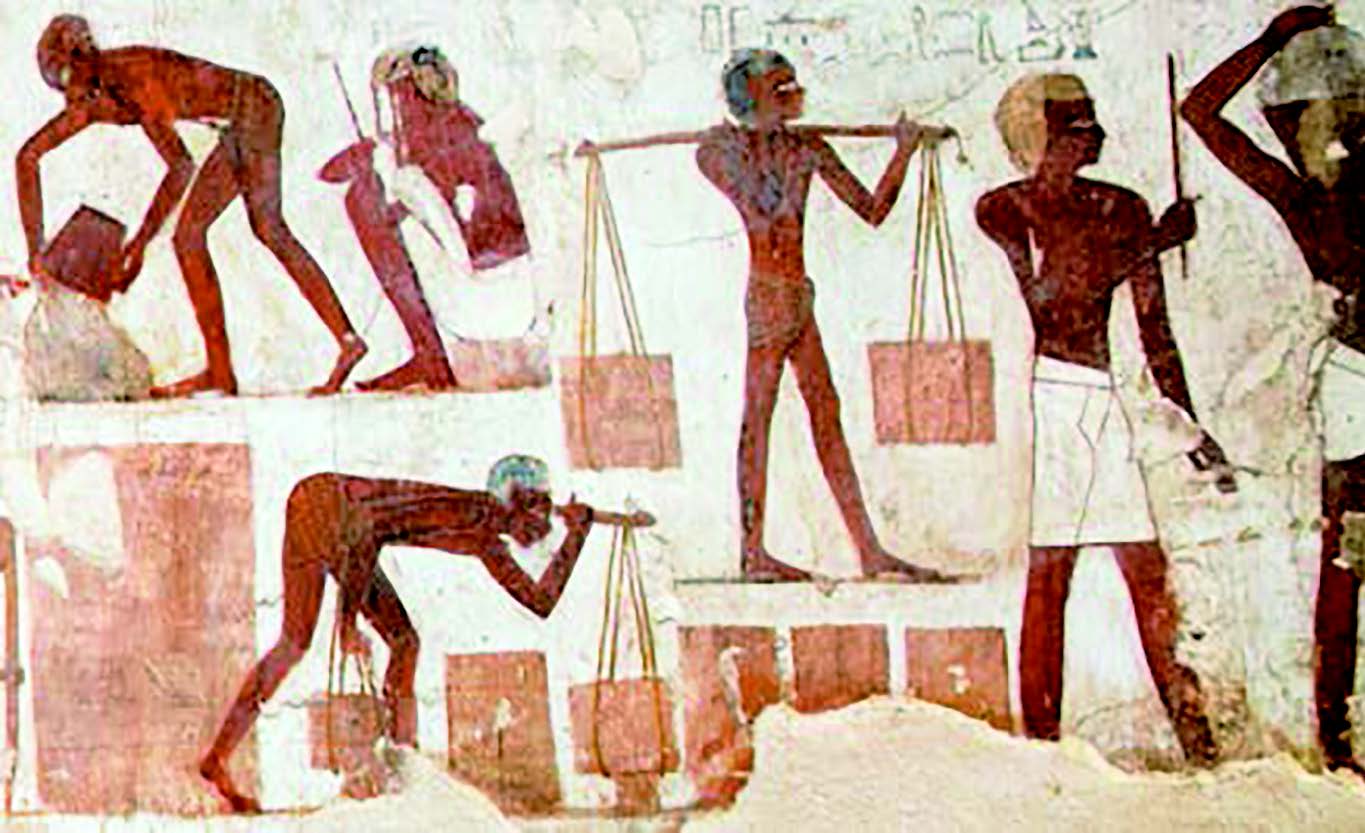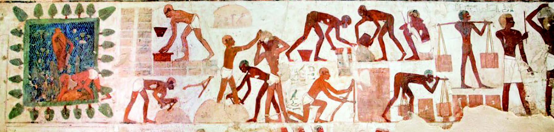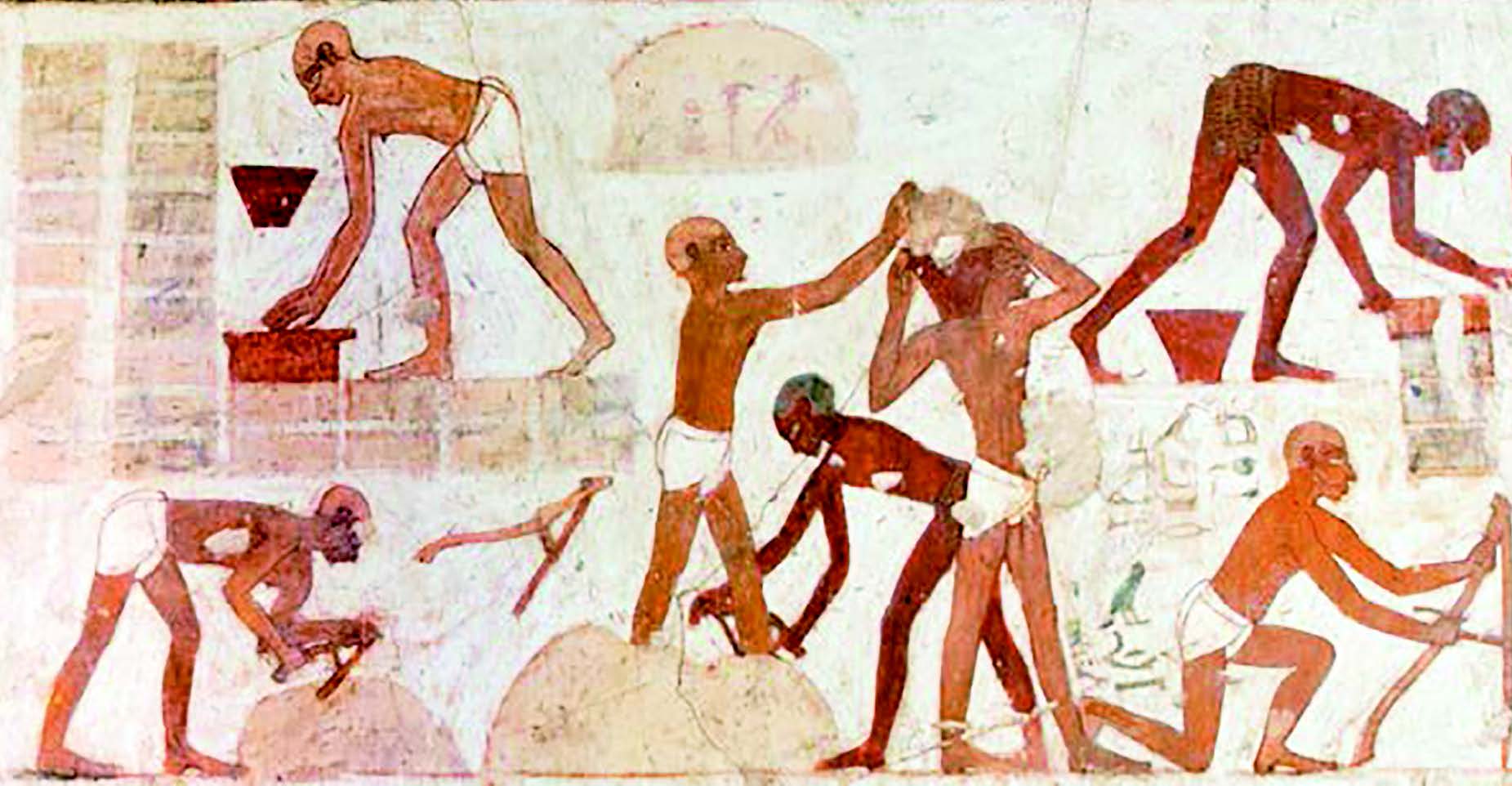 사진의 벽돌은 이스라엘 자손이 애굽에 있었을 시기로 추정되는 신왕국 시대에 애굽에서 만들어진 것이다. 벽돌 표면을 보면 지푸라기가 섞인 것이 확인되는데, 이를 통해 출애굽기의 기록과 같이 당시에 벽돌을 만드는 데 짚이 쓰였다는 것을 확인할 수 있다. 표면에는 람세스 2세의 인장이 찍혀 있어, 왕 곧 국가 소유의 건물을 지을 때 사용된 벽돌임을 알 수 있다. 흙으로 만들어진 이와 같은 벽돌은 당시 건축 자재로 널리 사용되었다.