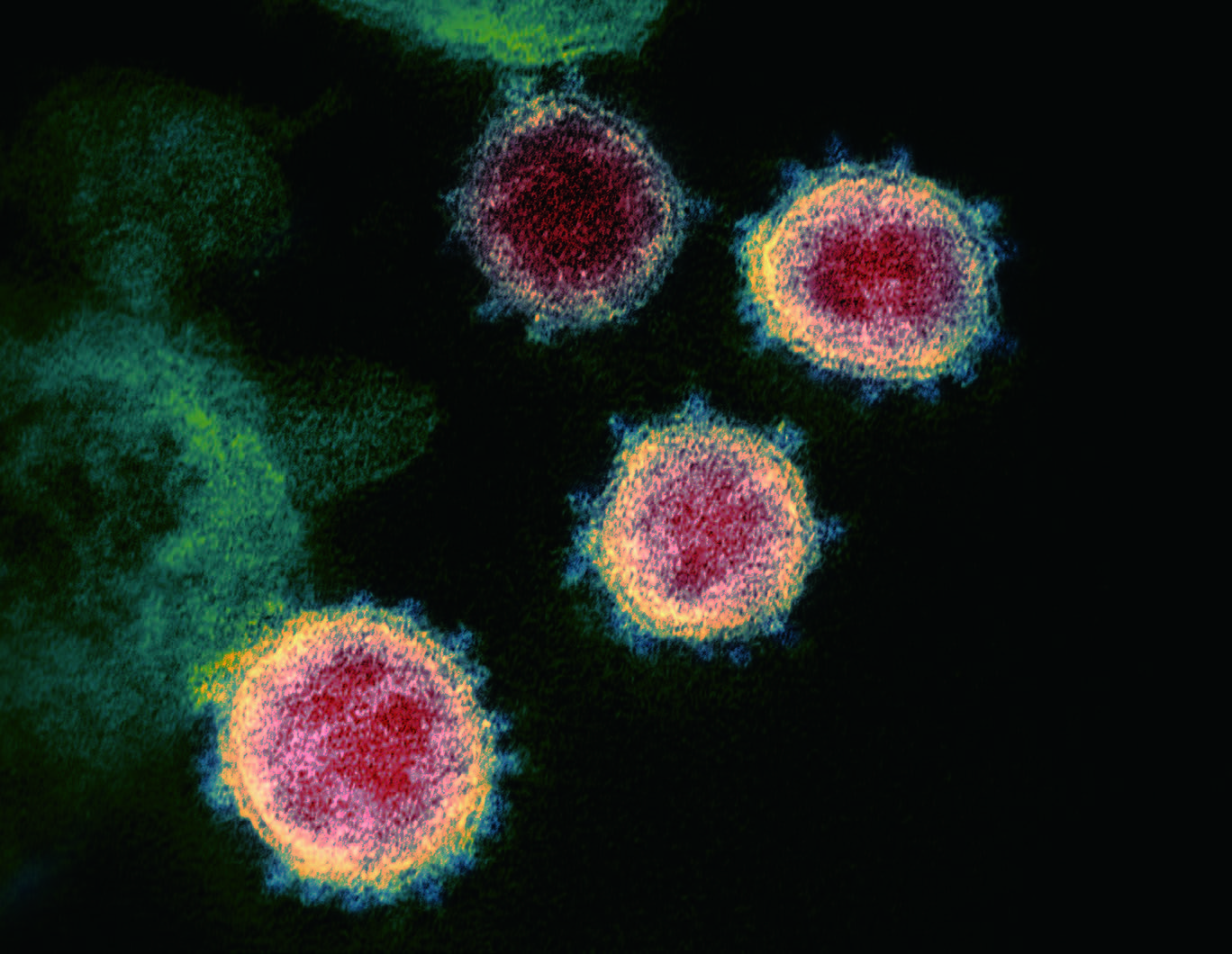 신종 코로나바이러스 입자의 전자현미경 사진, 코로나는 라틴어로 '왕관'이라는 뜻인데, 이름처럼 외피에 왕관 모양과 같은 돌기가 있다.