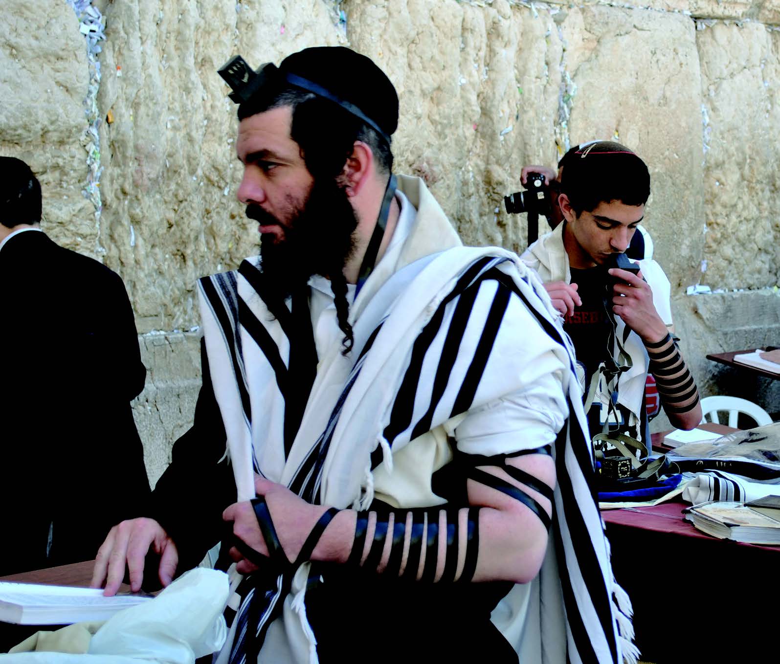 이런 식으로 정통 유대교인들이 지키는 관습 중에는 양피지 두루마리에 쓴 성구를 가죽으로 된 작은 상자에 넣어 머리와 팔에 매는 것이 있다. 그 가죽 상자와 끈을 테필린(Tefillin)이라고 하는데, 예루살렘의 통곡의 벽 앞에서는 테필린을 매고 기도하며 율법을 외우는 유대인들을 쉽게 찾아볼 수 있다. 유대인들을 전통 관습으로 돌아가도록 장려하는 한 단체에서는 안식일을 제외하고 매일 통곡의 벽에서 테필린을 매고 이 종교적 의식을 수행하고 완수하도록 격려하기도 한다.