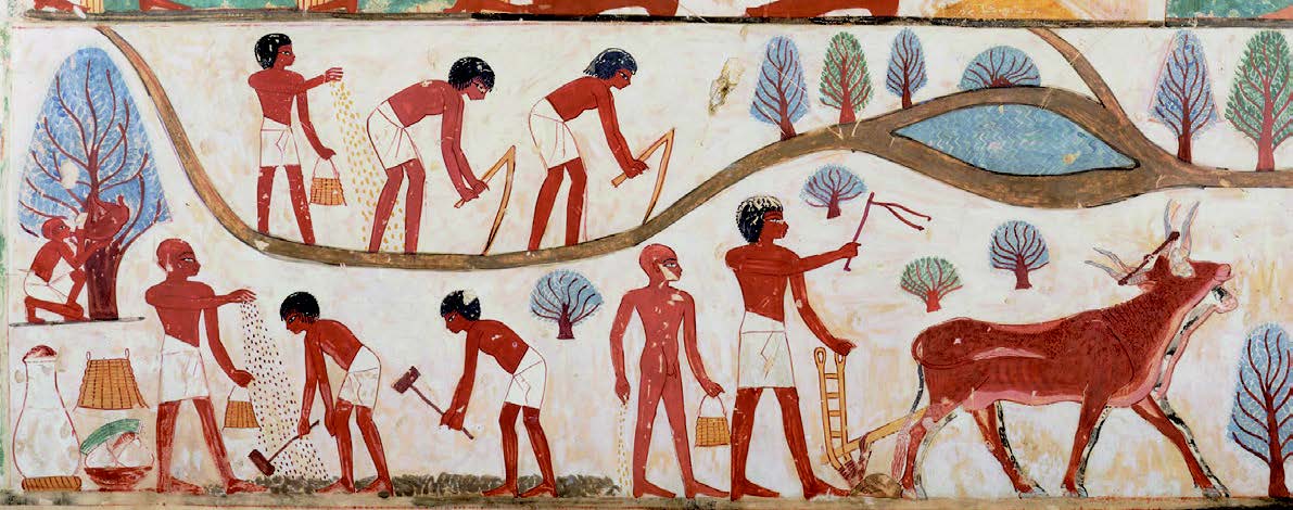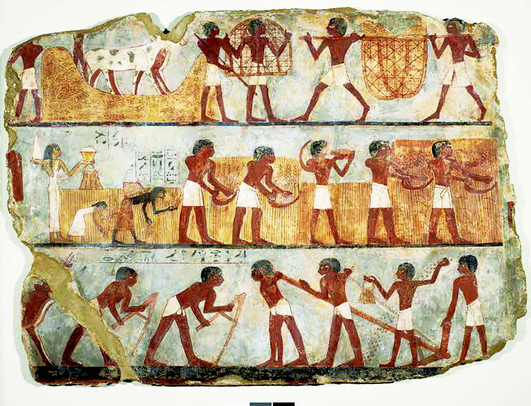 나일강 상류에는 테베라는 도시가 자리 잡고 있었다. 그 도시에 있던 아문(Amun) 신전에 속한 토지의 농사를 감독하는 감독관이자 곡식량 계수를 담당하는 서기관이던 운수(Unsu)라는 사람의 무덤에는 당시 이집트의 농사 과정이 다채롭게 표현되어