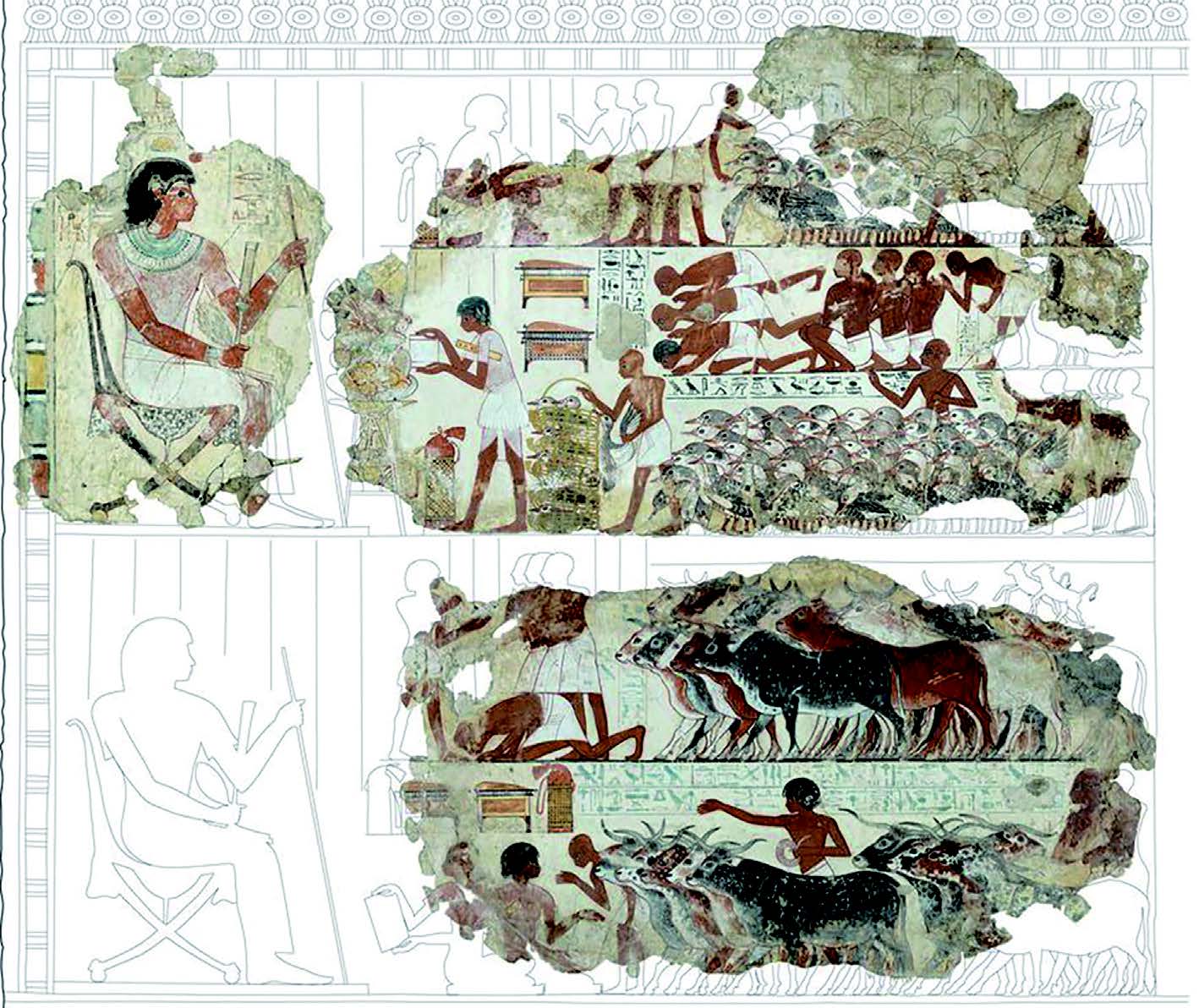 [자료1] BC 1350년경 이집트 신왕국 시대 제18왕조 아멘호테프 3세 시대에 살았던 귀족 관리 네바문의 무덤 벽화 중