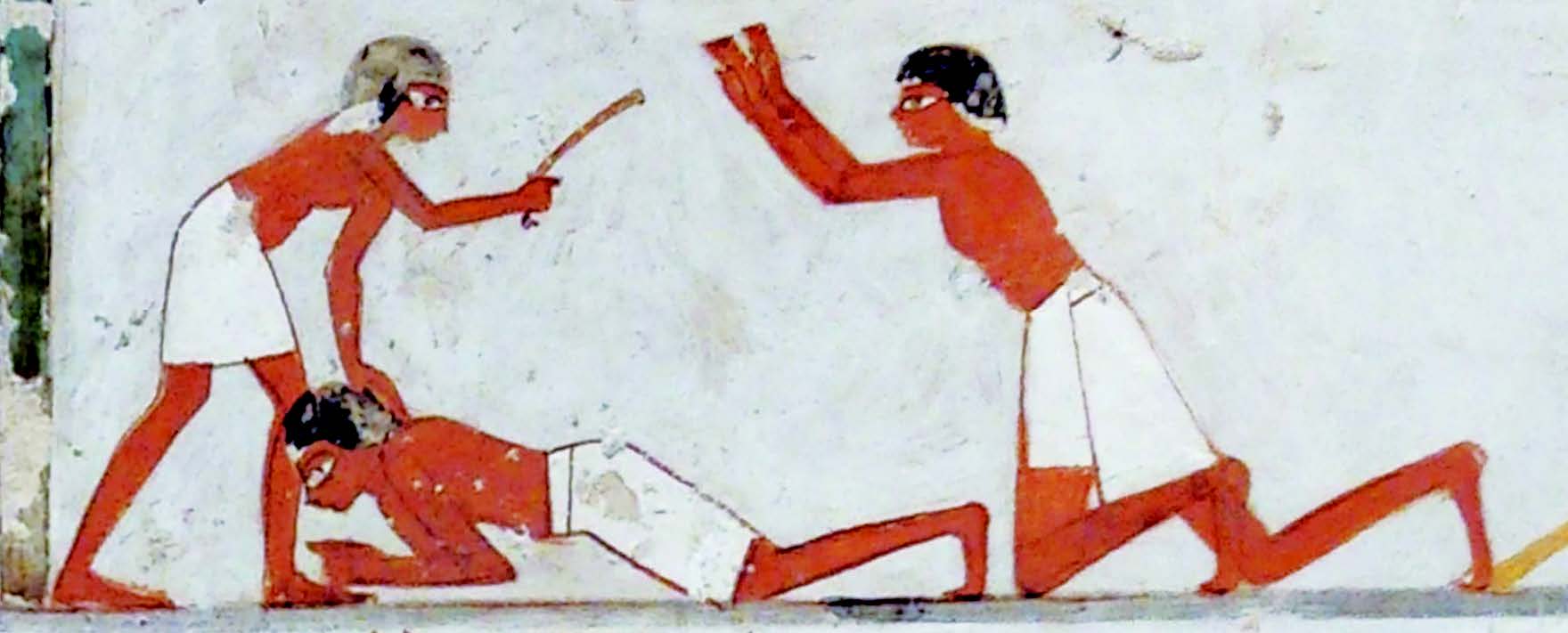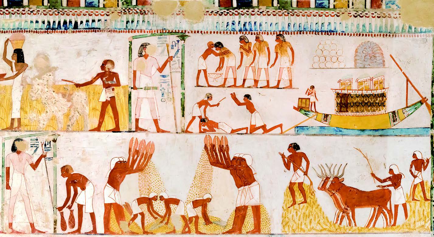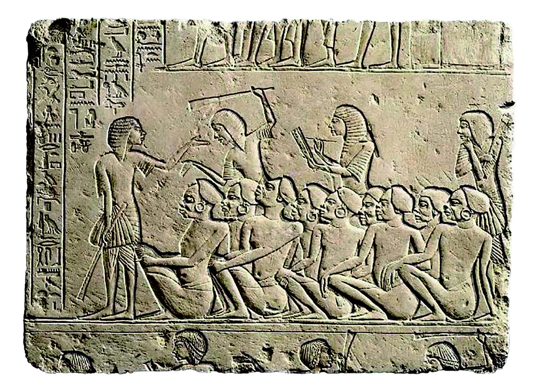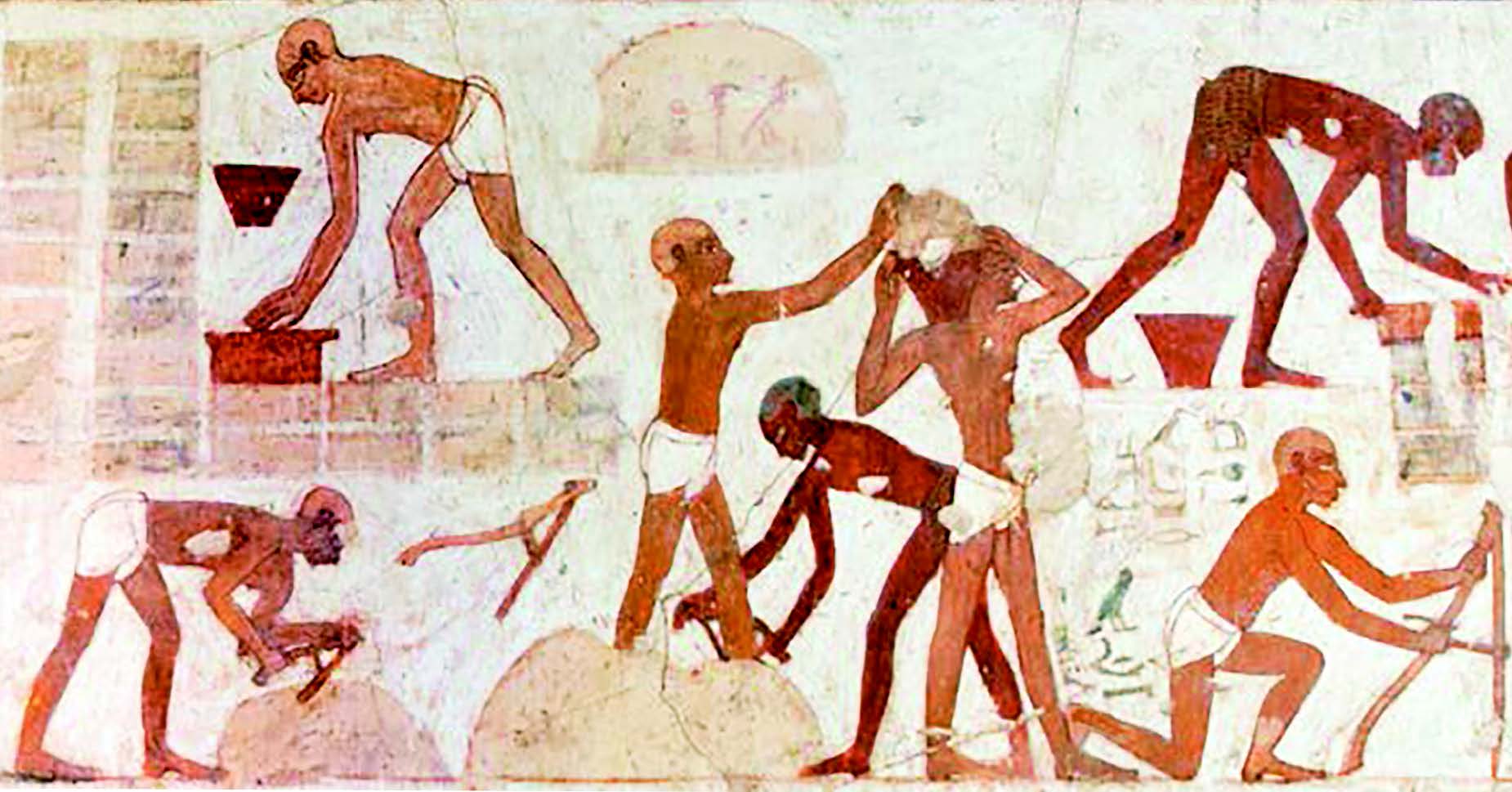 [자료 1] BC 15세기경 이집트 신왕국 시대 제18왕조 투트모시스 3세와 아멘호테프 2세 시대의고위 관료 레크미르의 무덤 벽화. 이민족 노예들이 벽돌을 만드는 장면이 묘사되어 있다.뉴욕 메트로폴리탄 미술관 소장
