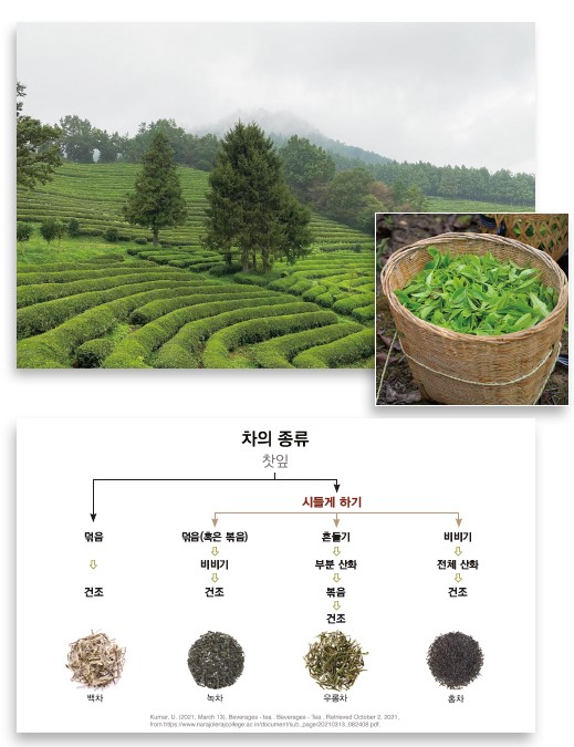 산화는 물질이 산소를 얻거나 수소를 잃는 반응을 말한다. 사과나 감자를 잘랐을 때 그 잘린 단면이 공기와 접촉하면 갈색으로 변하는 것도 산화 현상 때문이다. 녹차는 차를 만드는 과정에서 말린 찻잎을 문질러 산화 효소가 나오게 한 후에 덖어서 살청 과정을 거침으로써 산화 과정을 최소화한 반면에, 홍차는 찻잎을 자르거나 충격을 주어서 산화 효소를 조기에 활성화시킨 것이다.