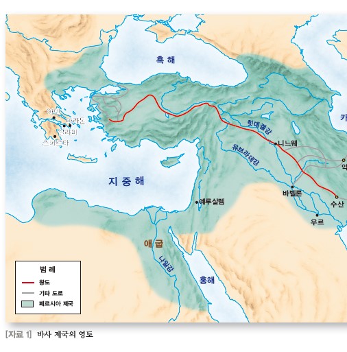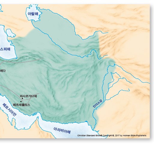 바사는 오늘날 이란 지역의 고원 지대를 중심으로 중앙아시아, 서아시아, 그리고 이집트를 포함한 넓은 지역을 통치했던 제국입니다. 구약성경 에스더에는 바사 제국 영토의 범위가 인도에서 구스까지 일백이십칠 도라고 기록되어 있습니다. 8:9 참조 바사 제국에는 파사르가다에와 악메다, 바벨론, 수산, 페르세폴리스 총 다섯 곳에 왕들이 통치했던 궁전들이 있었습니다.