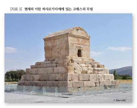 페르시아라는 이름은 페르시아 제국이 시작된 파르스 지방에서 유래되었습니다. 고대 그리스인들은 [자료 2] 지도의 오른쪽 하단에 청록색으로 표시된 이란의 남서부 해안 지역에 사는 사람들을 파르스라고 불렀는데, 이것을 라틴어식으로 발음한 것이 페르시아입니다. 바사(波斯)는 페르시아의 음차 표기입니다. 파르스 지방에는 페르시아가 메대 왕국의 속국이었을 때의 수도 파사르가다에가 있었습니다.