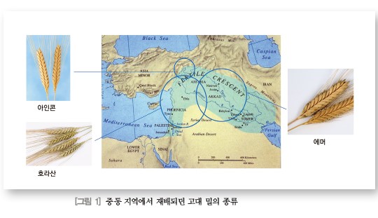 고대 인류 문명의 발생지이자 비옥한 초승달 지대로 불리는 중동 지역과 지중해 지역에서는 오래전부터 다양한 종류의 밀이 재배되었다. 유프라테스강 근처에서 재배되었던 아인콘(Einkorn), 이란 근교에서 재배되었던 에머(