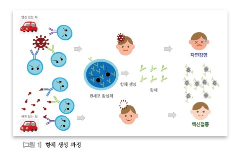 바이러스와 백신을 자동차로 비교한다면 백신은 엔진이 없는 자동차와 같다. 백신은 바이러스와 외부 구조가 같으므로 같은 항체를 유도할 수 있다. 하지만 엔진 없는 차가 앞으로 나아갈 수 없는 것처럼, 백신은 바이러스와 다르게 증식하지 않으므로 실제 바이러스에 감염된 것과 달리 항체가 생기기까지 극심한 증상을 동반하는 경우가 많지 않고, 항체를 만드는 과정 또한 비교적 수월하다. 그래서 가벼운 몸살이나 열이 나는 정도의 증세를 겪으면서 같은 항체를 만들 수 있으며 백신으로 인해 만들어진 항체는 실제로 우리 몸에 바이러스가 들어왔을 때 바이러스를 쉽게