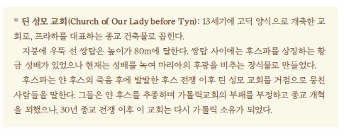 프라하에는 중세 시대의 유적이 많이 남아 있습니다. 그중에는 1270년에 지어진 유럽에서 제일 오래된 유대교 회당과 유대인 공동묘지 등 유대인이 살았던 흔적들도 많이 남아 있습니다.|d