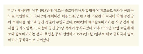 유럽의 중앙에 위치한 체코는 수도인 프라하를 기준으로 북쪽으로는 독일과 폴란드, 남쪽으로는 오스트리아, 슬로바키아와 국경을 접하고 있는 공화국입니다. 서부의 보헤미아, 동부의 모라비아, 동북부의 실레지아라고 부르는 세 지역으로 이루어져 있고 유럽의 중심에서 천 년 이상 주변 국가들과 교류하며 다양한 문화권을 가진 나라로 성장해 왔습니다.