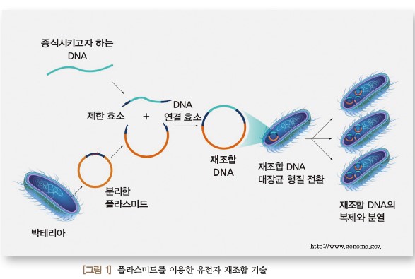 유전자 재조합 기술에 대해 알기 위해서는 먼저 ‘플라스미드’가 무엇인지를 이해해야 한다. 플라스미드는 박테리아에서 발견되는 작은 원형의 디엔에이(DNA)로서, 독자적으로 증식하는 특성이 있다. 플라스미드는 일반적으로 적은 수의 유전자를 가지고 있고, 한 박테리아에서 다른 박테리아로 전달되는 것이 가능하며 일부는 항생제 내성과도 관련되어 있다.
