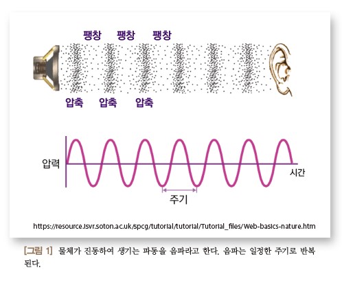 음악은 여러 가지 소리로 만들어진다. 소리는 물체가 진동함으로써 만들어지는데, 물체가 진동하면 공기의 압축과 팽창이 일어나고 그것이 반복되면서 파동이 만들어진다. 이 파동이 음파이다. 파도가 밀려오듯이 그 파동이 우리 귀에까지 전달되면 소리가 들리는 것이다.