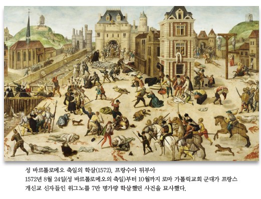 그런데 사람들이 신앙보다 인간의 합리적인 사고를 더 중요하게 여기게 되는 계기가 생겼습니다. 바로 종교 전쟁입니다. 종교 개혁 이후 로마의 가톨릭과 개신교 진영 사이에는 큰 갈등이 생겼고, 이로 인해 유럽 곳곳에서 무력 충돌이 일어났습니다. 영국에서는 청교도와 영국 국